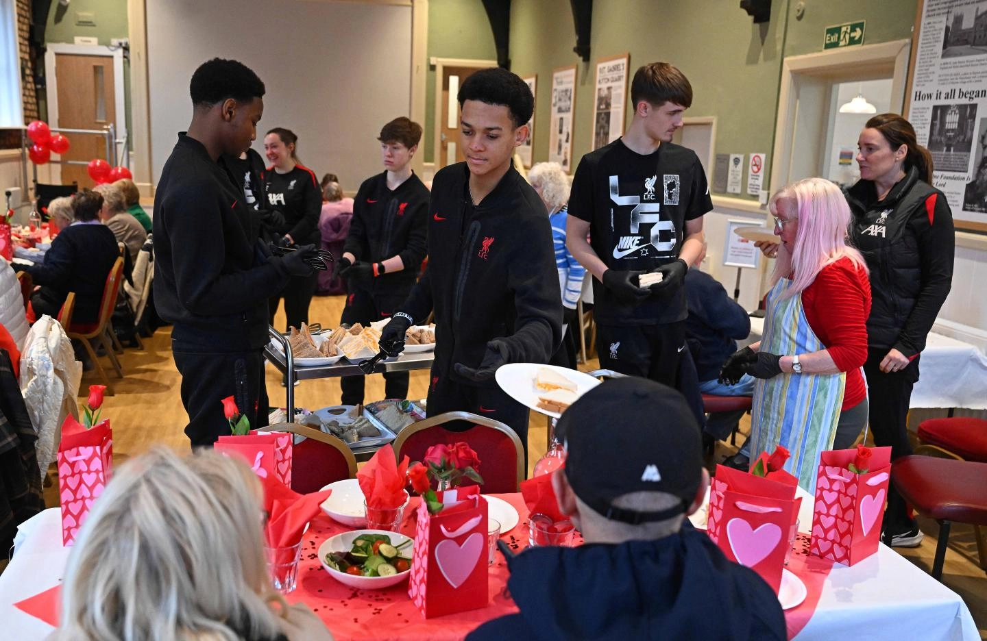 Irene Wibberley, church warden at St Gabriel's, said: "We were delighted to celebrate Valentine's Day with a group of the LFC U18s football team. They've been very helpful and are really loving welcoming all the guests.