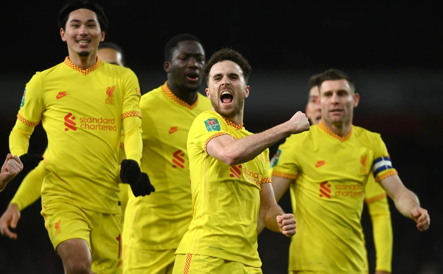Takumi Minamino’s stoppage-time leveller sent the tie to a penalty shootout, in which the Reds’ sixth and decisive spot-kick was emphatically dispatched by Jota, whose celebration showed just what the club meant to him.