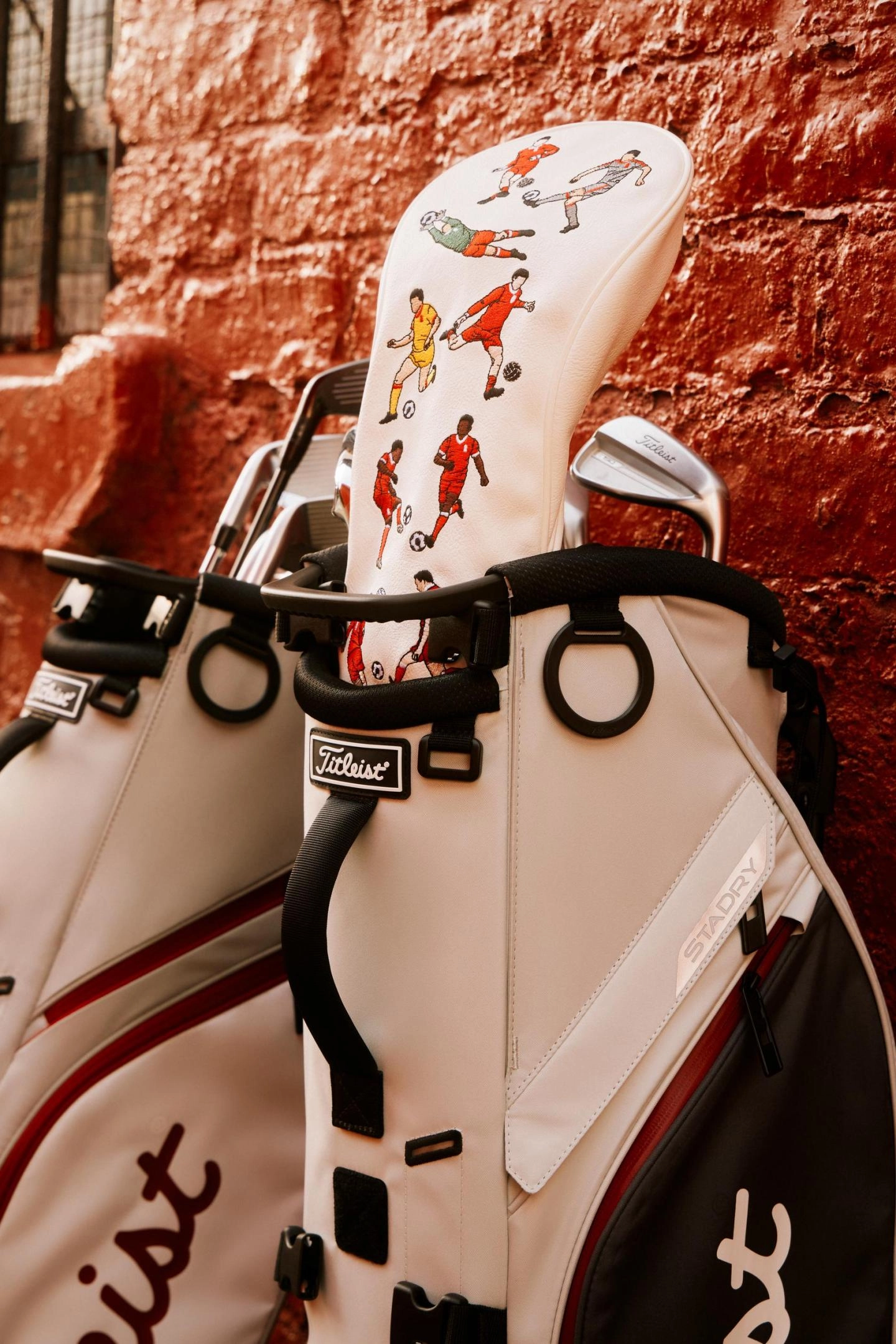 A oferta LFC x Titleist também se estende a uma seleção de bolsas de golfe premium, projetadas para desempenho, durabilidade e conforto.